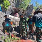 TTU – Personel Makosatgas Pamtas RI-RDTL Sektor Barat Yonarhanud 2 Kostrad mengadakan kegiatan Karya Bakti bersama masyarakat perbatasan guna membersihkan lingkungan Goa