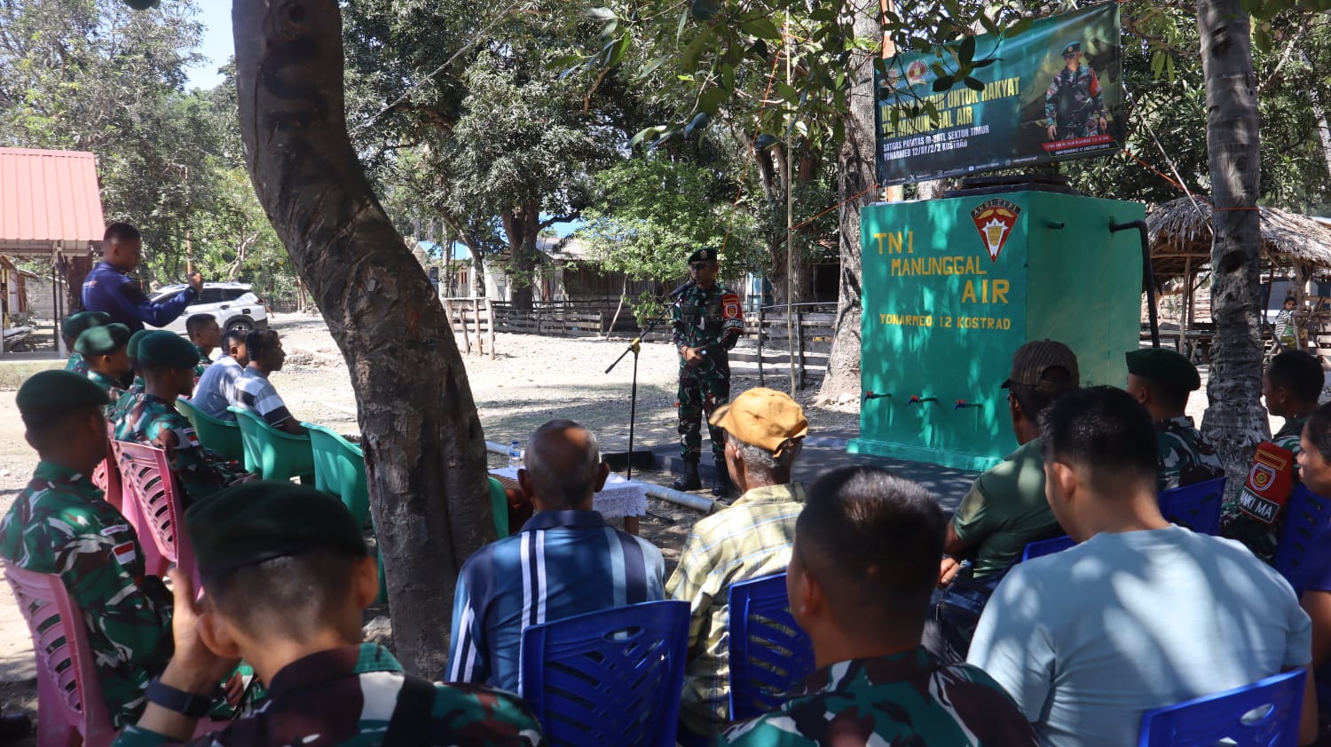 Belu – Satgas Pamtas RI–RDTL Sektor Timur Yonarmed 12 Kostrad melalui Pos Silawan melaksanakan kegiatan penyerahan sumur air yang telah direvitalisasi kepada masyarakat di Dusun Adubitin, Desa Silawan, Kecamatan Tasifeto Timur, Kabupaten Belu, Provinsi Nusa Tenggara Timur. Kegiatan ini menjadi wujud nyata kepedulian TNI dalam membantu memenuhi kebutuhan air bersih bagi masyarakat di wilayah perbatasan.