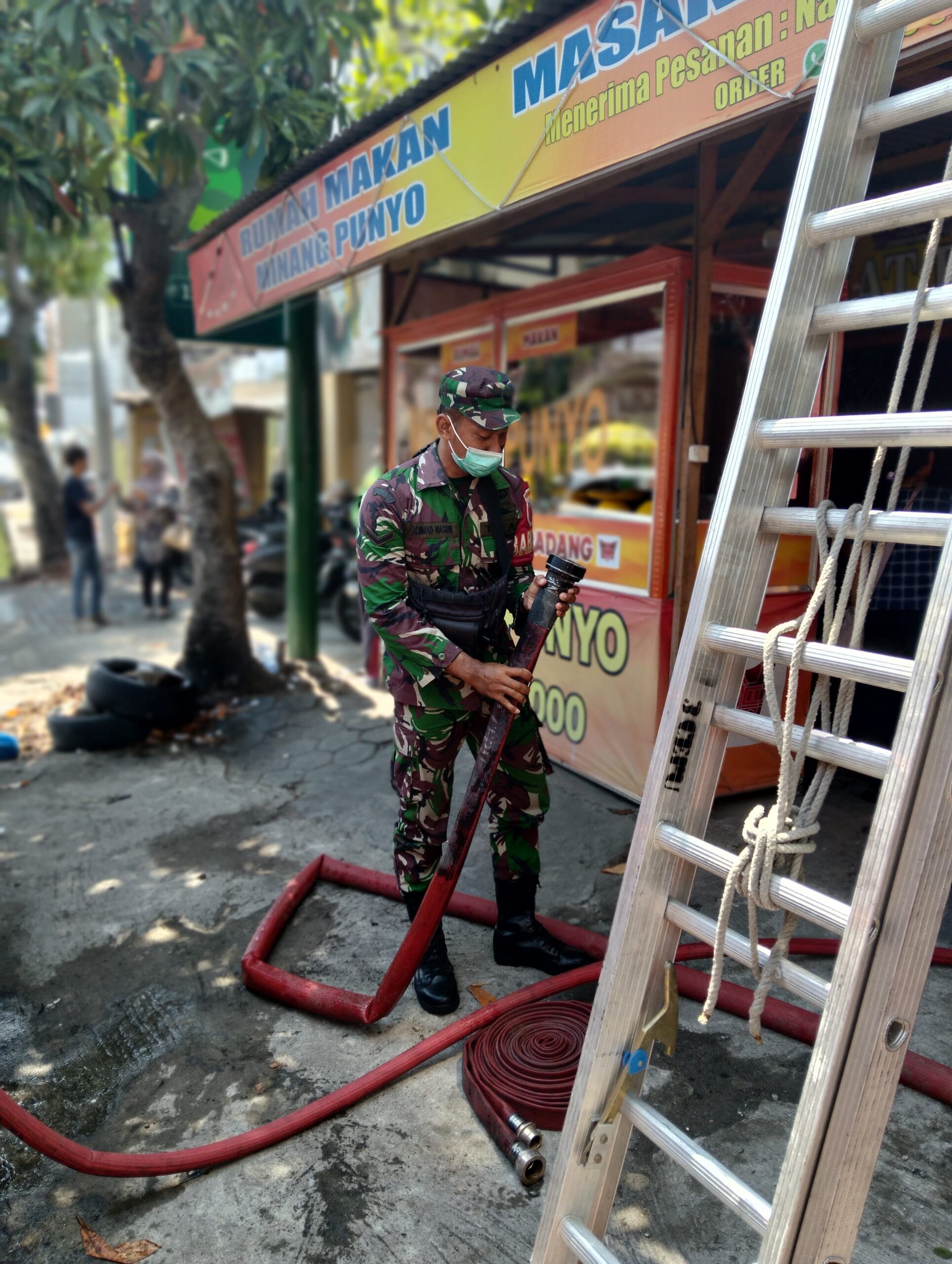 Aksi Sigap Babinsa Koramil 0830/11 Rungkut Tanggulangi Kebakaran di Warung Milik Warga