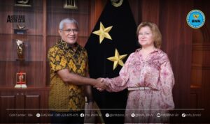 Jakarta – Kepala BNN RI Marthinus Hukom didampingi Kepala Pusat Penelitian Data dan Informasi (Puslitdatin), Augustinus Berlianto Pangaribuan, menerima kunjungan kerja dari Duta Besar Rusia, Veronika Novoseltseva, di Gedung Tan Satrisna BNN, Cawang, Jakarta Timur, pada Kamis (17/7).