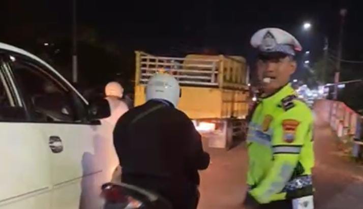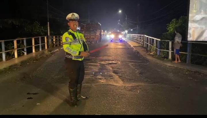 Aksi sigap dan cekatan dilakukan Bripda Arifin sebagai respons untuk mengurai kemacetan atas macetnya sebuah truck pengangkut kayu nopol N 8029 TB ditengah jembatan agar arus lalu lintas tidak tersendat, maka dilakukan buka tutup. Senin malam (03/11/2025).