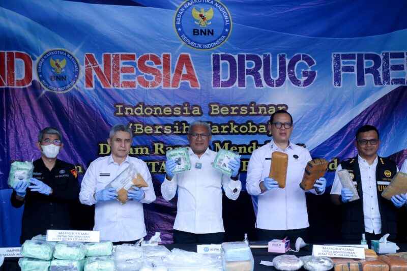 JAKARTA| Markas Khusus – Badan Narkotika Nasional (BNN) kembali membuktikan akuntabilitas dan transparansi pemberantasan melalui pemusnahan sejumlah barang bukti narkotika. Pada pemusnahan kedua di tahun 2025 ini, BNN panjangnya sebanyak 122.643,96 gram sabu, 726.686,49 gram ganja, dan 4.700 butir ekstasi, setelah sebelumnya dikurangi untuk kebutuhan pengujian laboratorium, dengan rincian sabu 288,81 gram, ganja 4.668,57 gram, dan ekstasi 14 butir. Seluruh barang bukti yang dihancurkan tersebut merupakan hasil dari pengungkapan 12 kasus tindak pidana narkotika yang melibatkan 30 orang tersangka. Adapun rincian dari keduabelas kasus barang bukti narkotika yang dimusnahkan sebagai berikut: