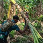 Belu – Personel Pos Nananoe Satgas Pamtas RI–RDTL Sektor Timur dari Yonarmed 12 Kostrad melaksanakan kegiatan ketahanan pangan (Hanpangan) dengan melaksanakan panen