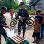Belu – Satgas Pamtas RI–RDTL Sektor Timur Yonarmed 12 Kostrad melalui Pos Nunura melaksanakan kegiatan Jumat Berkah yang dipadukan dengan pelayanan kesehatan