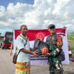 TTU – Satgas Pamtas RI-RDTL Sektor Barat Yonarhanud 2 Kostrad Pos Inbate bersinergi bersama anggota Kodim 1618/TTU memberikan Paket Sembako berupa beras