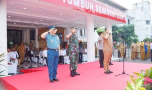 Surabaya – Komandan Kodim ( Dandim ) 0830/Surabaya, Kolonel Inf Didin Nasruddin Darsono S.Sos.,M.Han, bersama Forkopimda Surabaya mengikuti Apel Gelar Pasukan Jogo Suroboyo 2025 di halaman Balai Kota Surabaya. Apel yang dipimpin oleh Walikota Surabaya, Eri Cahyadi, ini menekankan pentingnya peningkatan kesiapsiagaan dalam menjaga keamanan dan ketertiban di Kota Surabaya.