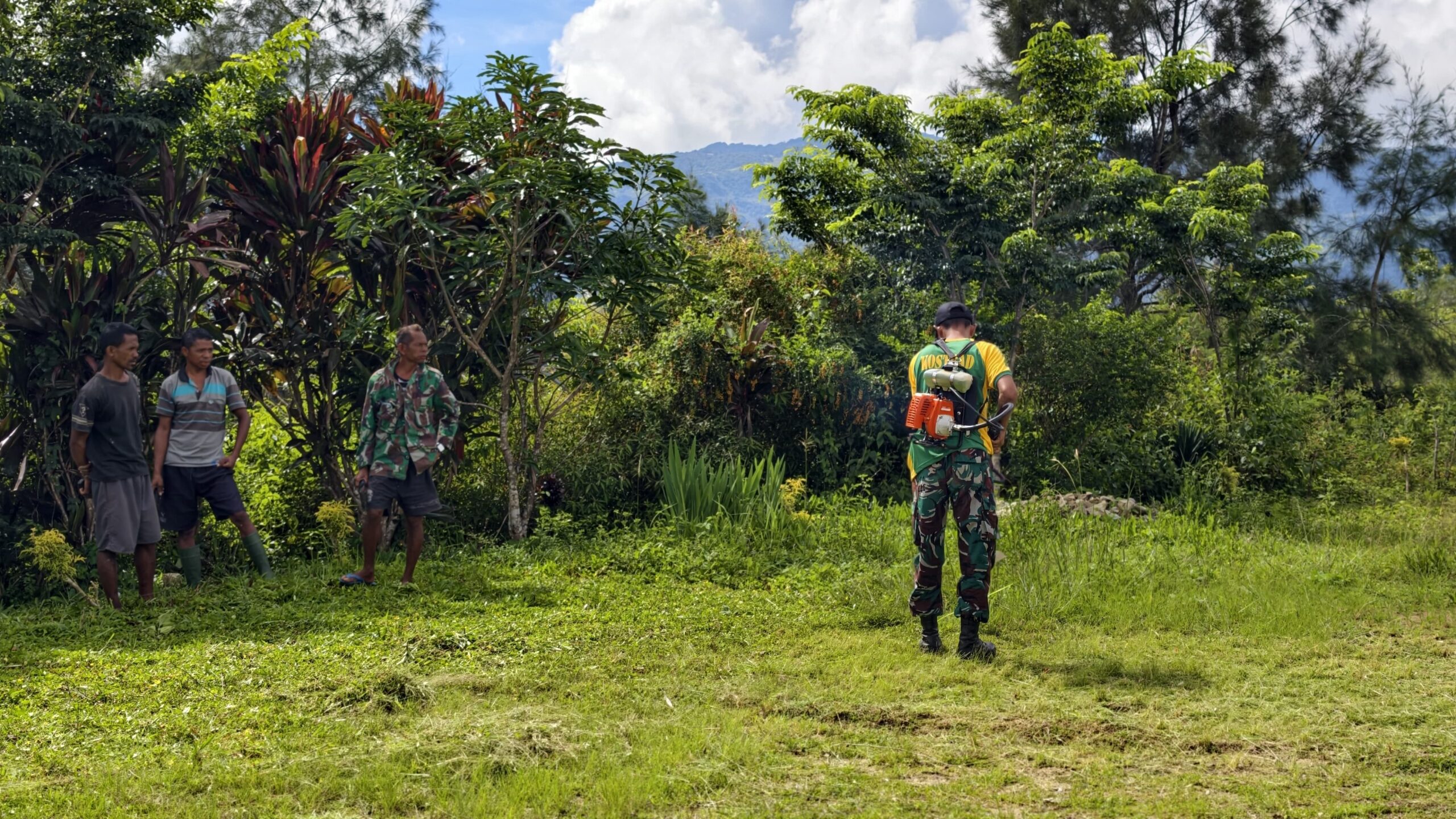 Belu – Satgas Pamtas RI–RDTL Sektor Timur Yonarmed 12 Kostrad melalui Pos Fohuk melaksanakan kegiatan karya bakti di Kapela St. Benediktus Abbas, Piebulak, Loonuna, Kecamatan Lamaknen Selatan, Kabupaten Belu, Nusa Tenggara Timur. Kegiatan ini berupa pembersihan halaman kapela dari rumput liar sebagai bentuk kepedulian Satgas terhadap kebersihan dan kenyamanan rumah ibadah.