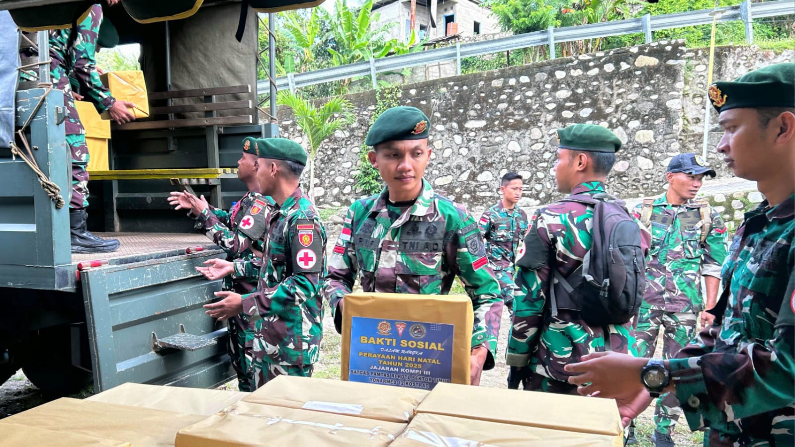 TTU – Satgas Pamtas RI–RDTL Sektor Timur Yonarmed 12 Kostrad melalui jajaran Kompi 3 melaksanakan kegiatan bakti sosial dan pelayanan kesehatan bagi masyarakat Desa Alas, Kecamatan Kobalima Timur. Kegiatan ini digelar dalam rangka menyambut perayaan Natal serta sebagai wujud kepedulian Satgas terhadap kesejahteraan masyarakat di wilayah perbatasan.