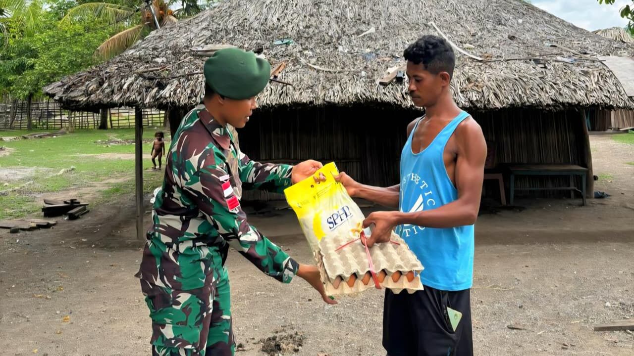 Pembagian sembako tersebut dipusatkan di Pos Motaain dan disalurkan kepada 30 orang warga Desa Mota’ain. Adapun paket sembako yang dibagikan berupa satu rak telur dan beras seberat lima kilogram untuk setiap penerima, guna membantu memenuhi kebutuhan pokok masyarakat menjelang Hari Raya Natal.