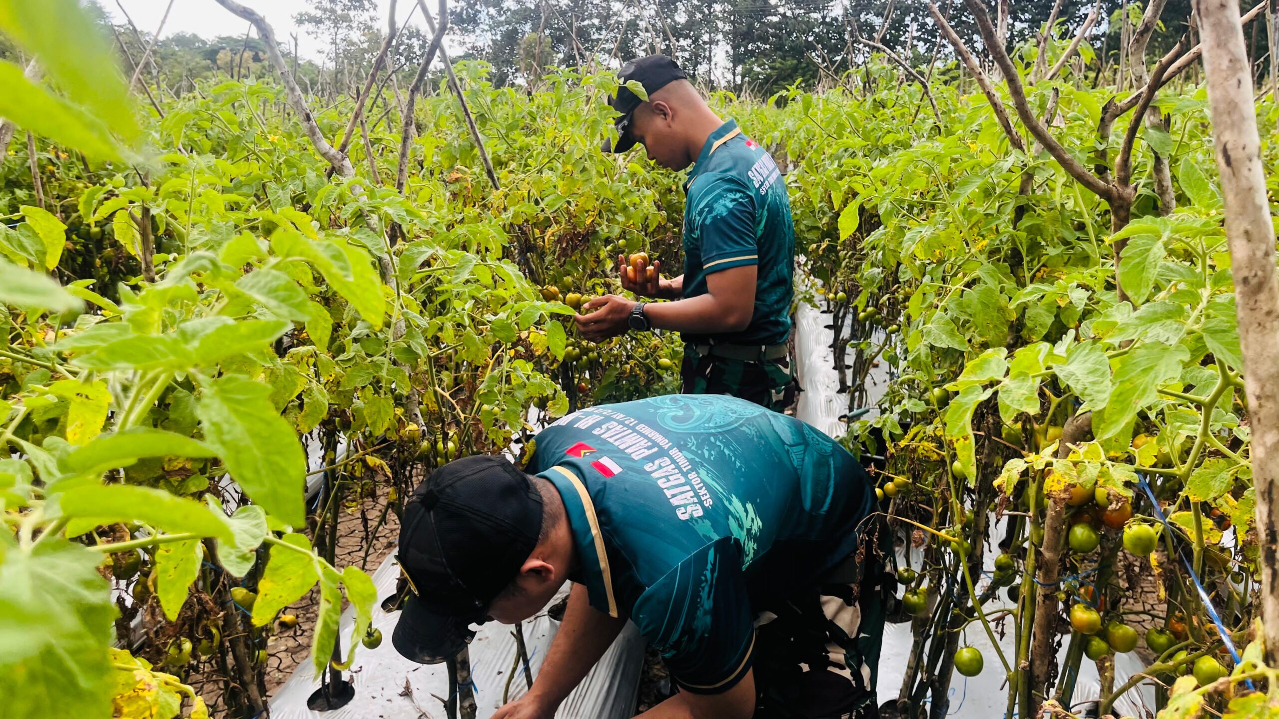Belu – Satgas Pamtas RI–RDTL Sektor Timur Yonarmed 12 Kostrad melalui Pos Lookeu melaksanakan kegiatan panen raya tomat bersama masyarakat di Desa Lookeu, Kecamatan Tasifeto Barat, Kabupaten Belu, Rabu (1/4/2026). Kegiatan ini merupakan bagian dari program ketahanan pangan sekaligus upaya mempererat hubungan antara prajurit TNI dengan warga di wilayah perbatasan.
