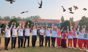 Kombes Pol Agus Wibowo, bersama Waka SPN, PJU, dan Ketua Bhayangkari, melepaskan 17 ekor burung merpati ke angkasa.
