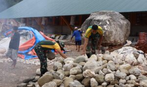 Puluhan personel Yonarmed 12 Kostrad terlibat langsung dalam pekerjaan pembangunan, mulai dari pengecoran hingga penataan area bangunan gereja. Para prajurit bekerja bersama masyarakat dengan penuh semangat dan gotong royong, sehingga mempercepat proses pembangunan dan menciptakan suasana kebersamaan yang erat antara TNI dan warga.