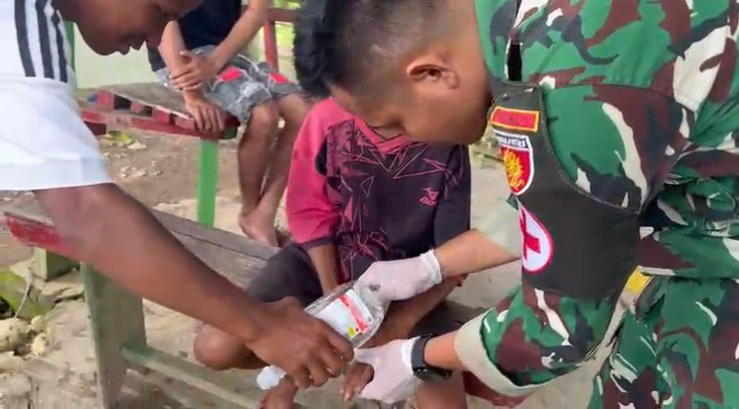 Pelayanan kesehatan diberikan kepada seorang anak bernama Milton Dos Santos (11), yang datang ke Pos Salore dengan kondisi luka sobek di bagian tangan akibat terkena benda tajam. Dengan sigap dan penuh kepedulian, tim kesehatan Pos Salore yang dipimpin oleh Praka Marsel segera melakukan pemeriksaan dan tindakan medis berupa pembersihan luka, pemberian obat, serta penanganan lanjutan guna mencegah infeksi dan mempercepat proses penyembuhan.