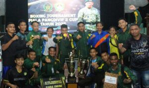Malang, www.kabarmarkus.com – Pelatih tim tinju Sasana Manggala Boxing Camp Yonbekang 2/MWJ/2 Kostrad, Kopka Taussison, sukses mengantar timnya meraih gelar juara umum dalam ajang Boxing Tournament Piala Pangdivif 2 Kostrad, yang digelar di GOR Vicadha Madivif 2 Kostrad, Singosari, Kabupaten Malang, pada 18 hingga 20 April 2025.