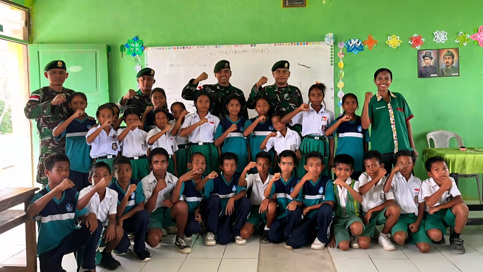 Belu – Satgas Pamtas RI–RDTL Sektor Timur Yonarmed 12 Kostrad Pos Nananoe kembali menunjukkan kepeduliannya terhadap dunia pendidikan di wilayah perbatasan. Kali ini, personel Pos Nananoe melaksanakan kegiatan pengajaran Ilmu Pengetahuan Sosial (IPS) kepada para siswa SDI Nanaenoe, Kecamatan Nanaet Duabesi, Kabupaten Belu. Kegiatan ini bertujuan membantu sekolah dalam meningkatkan kualitas pembelajaran serta memberikan pemahaman dasar mengenai lingkungan sosial dan kehidupan berbangsa.