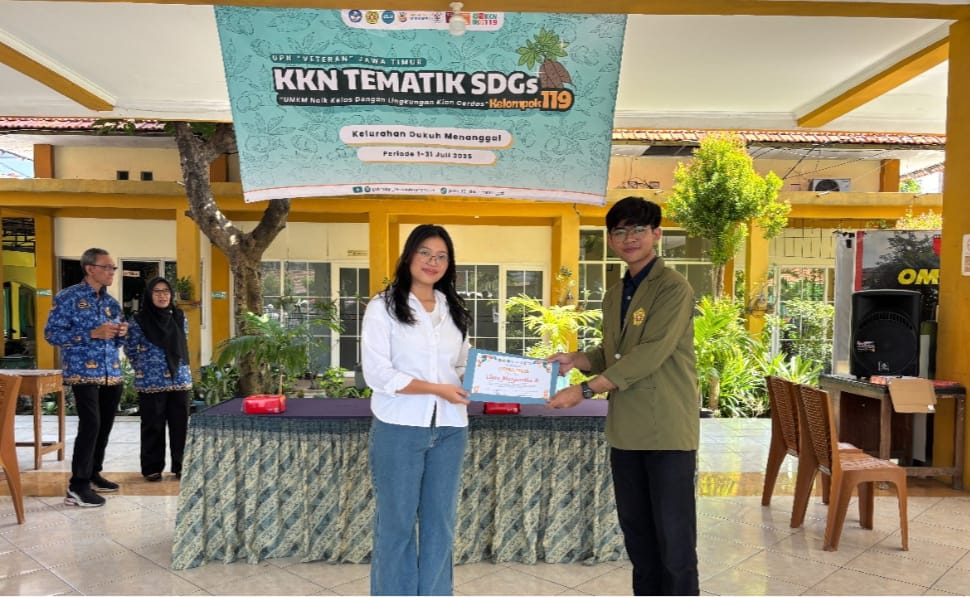 Surabaya, 18 Juli 2025 – Mahasiswa KKN Kelompok 119 UPN Veteran Jawa Timur berhasil memberdayakan UMKM di Kelurahan Dukuh Menanggal, Surabaya, melalui program pendampingan inovasi produk olahan singkong. Program ini menghasilkan inovasi baru berupa Shimmer, kripik singkong dengan lapisan glazed rasa cokelat dan tiramisu.