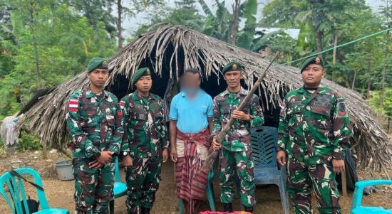 Wujud Sinergi dengan Rakyat, Satgas Pamtas Yonarhanud 2 Kostrad Terima Pucuk Senjata