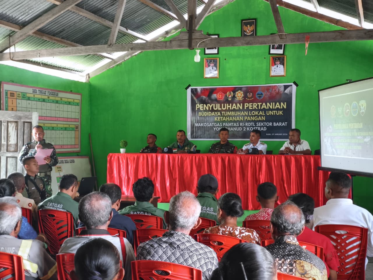 TTU – Satgas Pamtas RI-RDTL Sektor Barat Yonarhanud 2 Kostrad mengadakan kegiatan penyuluhan mengenai ketahanan pangan dengan menerapkan budidaya tanaman lokal yang dilaksanakan di Desa Lemon, Kecamatan Miomaffo Barat, Kabupaten TTU, Rabu (07/01/2026).