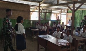 Belu – Satgas Pamtas RI–RDTL Sektor Timur Pos Laktutus kembali menunjukkan kepeduliannya terhadap dunia pendidikan di wilayah perbatasan melalui kegiatan Pembelajaran Umum (Gadik) di SMPN Satap Tubaki, Desa Dubesi, Kecamatan Nanaet Dubesi, Kabupaten Belu, NTT, Jumat (28/11/2025). Kehadiran personel Satgas disambut hangat oleh pihak sekolah maupun para siswa yang antusias mengikuti proses pembelajaran.