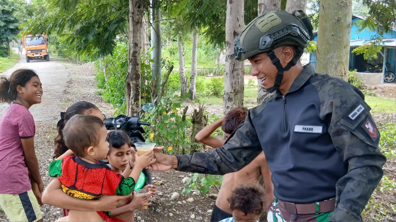 Belu – Satgas Pamtas RI–RDTL Sektor Timur Yonarmed 12 Kostrad melalui Pos Nunura melaksanakan kegiatan berbagi kolak kepada masyarakat di Desa Tohe, Kecamatan Raihat, Kabupaten Belu, Nusa Tenggara Timur, Selasa (13/1/2026). Kegiatan ini merupakan bentuk kepedulian Satgas terhadap masyarakat perbatasan sekaligus upaya mempererat hubungan silaturahmi antara TNI dan warga setempat.