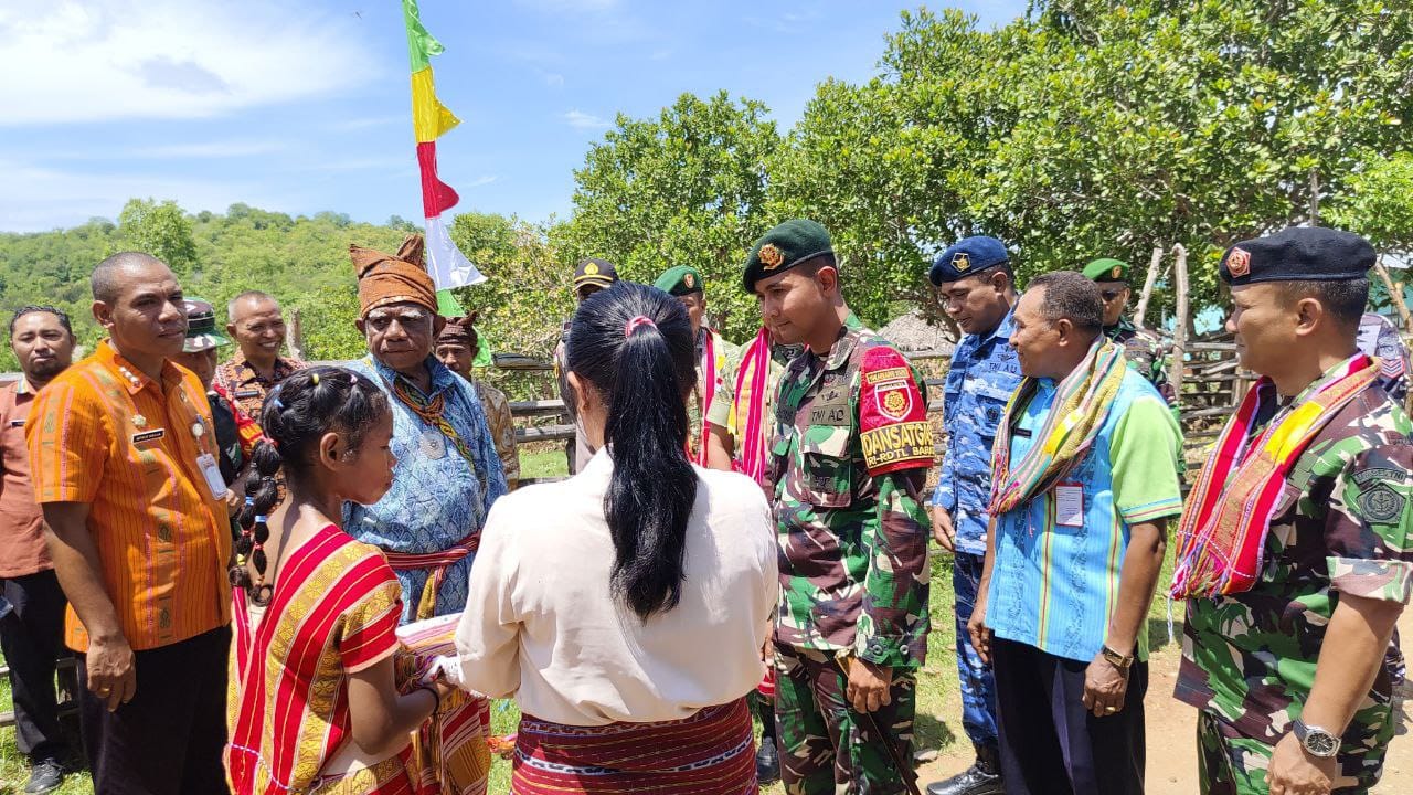 Dansatgas Pamtas, Letkol Arh Endis Fahrul Rizal, S.Hub.Int., M.Sc., menghadiri dan menyampaikan bahwa “Ini merupakan program dukungan dari TNI AD, dan kami sebagai personel Satgas Pamtas turut serta memberikan dukungan tenaga guna percepatan pembangunan SMPN Oepoli ini.”