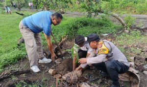 Jembrana – Upaya memelihara keamanan dan ketertiban masyarakat (Kamtibmas) yang kondusif sekaligus mendukung kelestarian lingkungan, Bhabinkamtibmas Desa Budeng Polsek Kota Jembrana Aiptu I Wayan Suadi bersama pemerintah desa dan adat menggelar kegiatan gotong royong penanaman pohon kelapa dan alpokat di Banjar Delod Pangkung, Desa Budeng, Kecamatan Jembrana, Sabtu (25/10/2025).
