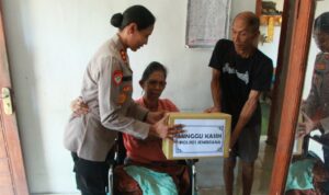 Dalam kegiatan penuh kehangatan tersebut, Kapolres Jembrana menyerahkan bingkisan bantuan kepada warga masyarakat setempat, salah satunya Ni Ketut Warni, yang tengah mengalami sakit.