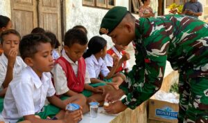 Belu – Dalam semangat kepedulian dan kebersamaan, personel Pos Maubusa Satgas Pamtas RI-RDTL Sektor Timur Yonarmed 12 Kostrad menggelar kegiatan “Pos Maubusa Berbagi di Tapal Batas” di SD Inpres Betaus, Desa Asumanu, Kecamatan Rehat, Kabupaten Belu, Nusa Tenggara Timur. Kegiatan ini menjadi wujud nyata perhatian Satgas terhadap masyarakat, khususnya generasi muda di wilayah perbatasan Indonesia–Timor Leste.