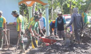 Lumajang – Prajurit TNI, warga dan relawan masih berjibaku dengan lumpur yang menutupi rumah warga di Desa Supiturang, Kecamatan Pronojiwo, pasca erupsi Gunung Semeru. Dengan penuh semangat, mereka bahu-membahu membersihkan material vulkanik yang menghambat aktivitas masyarakat, Senin (25/11/2025).