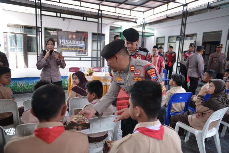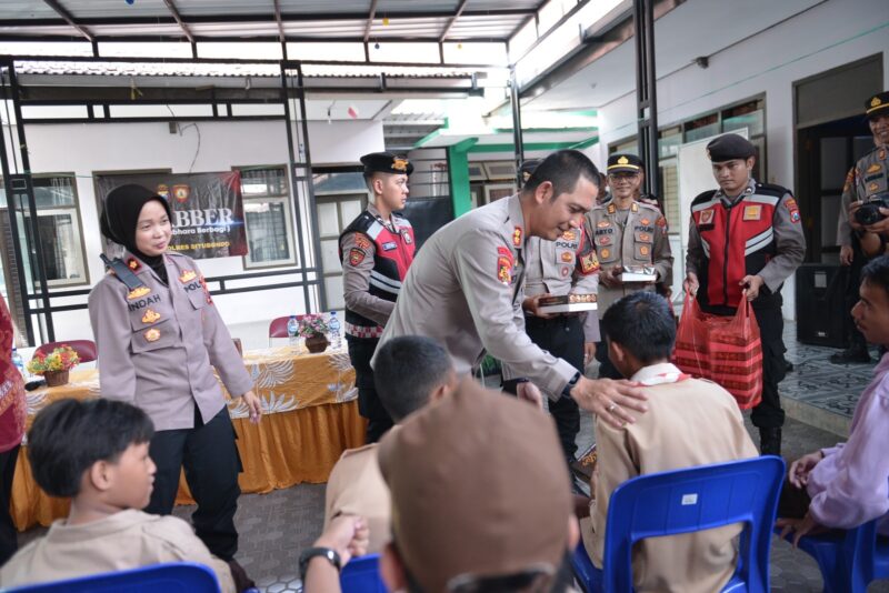 Situbondo|Markas Khusus – Dalam rangka menjalankan program sosial bertajuk Pasabber “Pasukan Samapta Bersedekah”, Kapolres Situbondo AKBP Rezi Dharmawan, S.I.K., M.I.K. , bersama jajaran Satuan Samapta melaksanakan kegiatan sosial membagikan makanan bergizi kepada anak-anak di Sekolah Luar Biasa (SLB) Dharma Wanita Situbondo, Jum’at (11/4/2025)