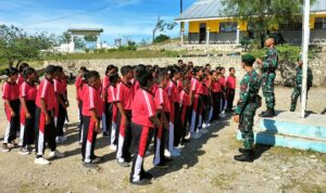Malaka – Satgas Pamtas RI–RDTL Sektor Timur Pos Ailala kembali melaksanakan kegiatan pembinaan bagi generasi muda di wilayah perbatasan. Bertempat di SMPN Kota Biru, Kecamatan Kobalima Timur, Kabupaten Malaka, personel Pos Ailala memberikan pelajaran baris-berbaris (PBB) kepada para siswa sebagai upaya meningkatkan kedisiplinan dan kekompakan.