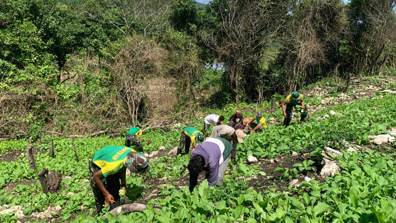 Belu – Satgas Pamtas RI–RDTL Sektor Timur Yonarmed 12 Kostrad Pos Lakmars melaksanakan kegiatan panen raya tanaman sawi bersama masyarakat di Desa Lakmars, Kecamatan Lakmanen Selatan, Kabupaten Belu. Kegiatan ini menjadi wujud kepedulian Satgas dalam mendukung ketahanan pangan dan membantu meningkatkan produktivitas pertanian warga perbatasan.