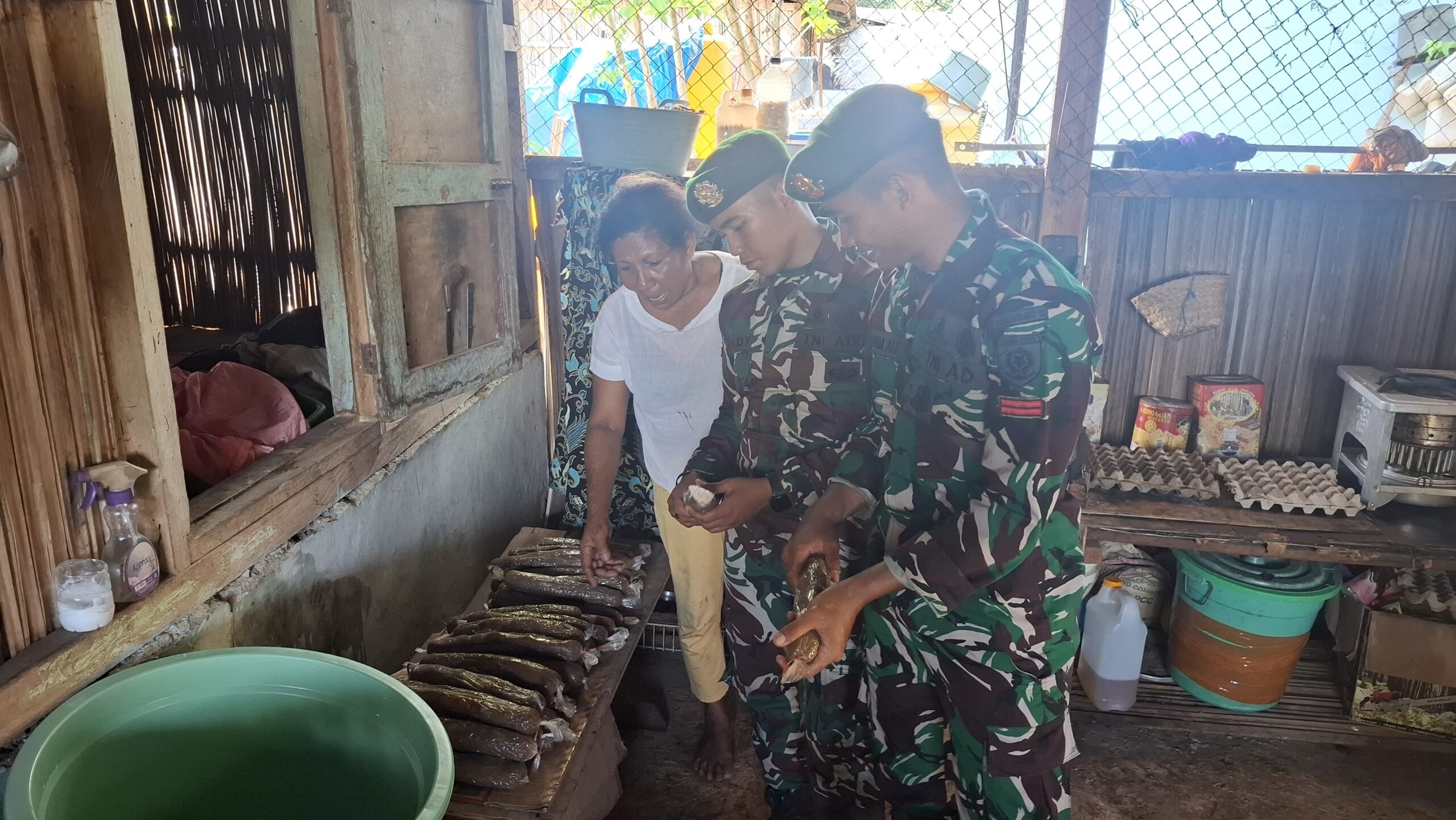 Dalam kegiatan tersebut, personel Pos Motaain memberikan penjelasan mengenai pemanfaatan ikan sebagai bahan baku, proses pengolahan yang higienis, hingga cara pengemasan sederhana agar produk memiliki daya tarik dan nilai jual lebih baik. Peserta turut praktik langsung sehingga pengalaman yang diterima lebih aplikatif.