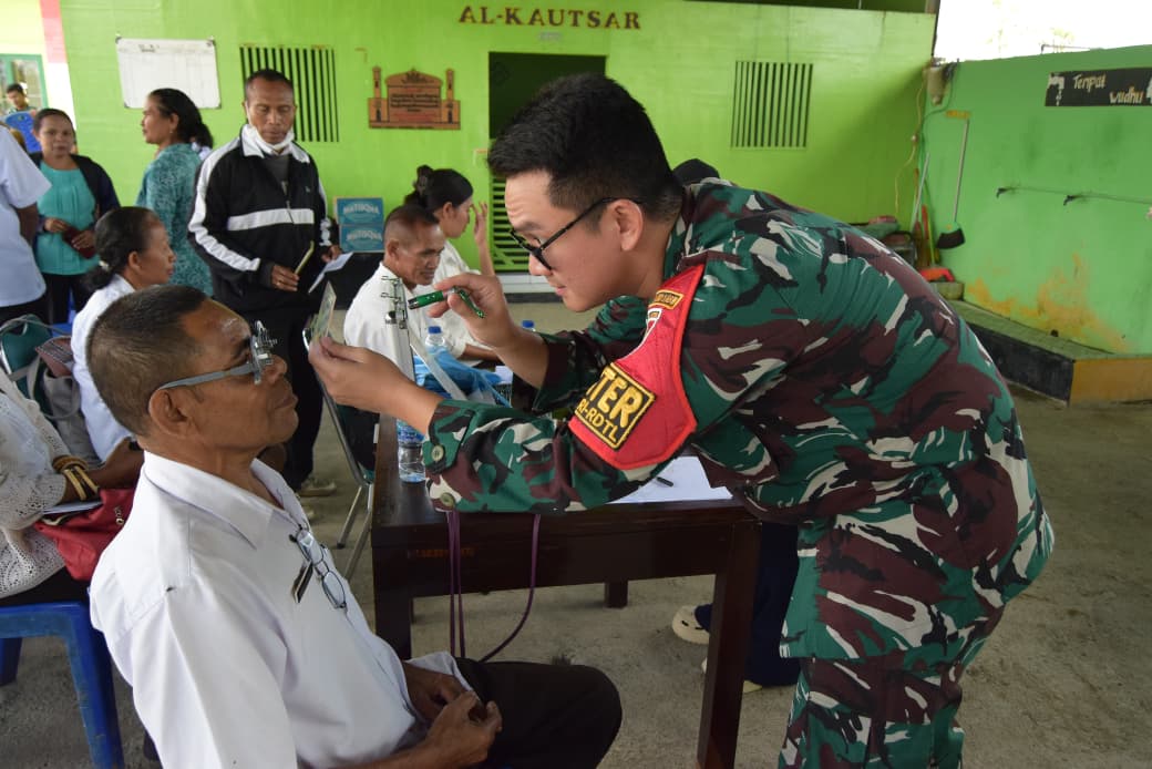TTU – Dalam suasana Peringatan Hari Guru Nasional dan HUT ke-80 PGRI, Satgas Pamtas RI-RDTL Sektor Barat Yonarhanud 2 Kostrad tunjukkan kepedulian terhadap kesehatan mata dengan mengadakan Pemeriksaan Mata dan Pembagian 500 Kacamata Gratis di Makosatgas, Desa Eban, Kecamatan Miomaffo Barat, Kabupaten TTU, Rabu (26/11/2025).