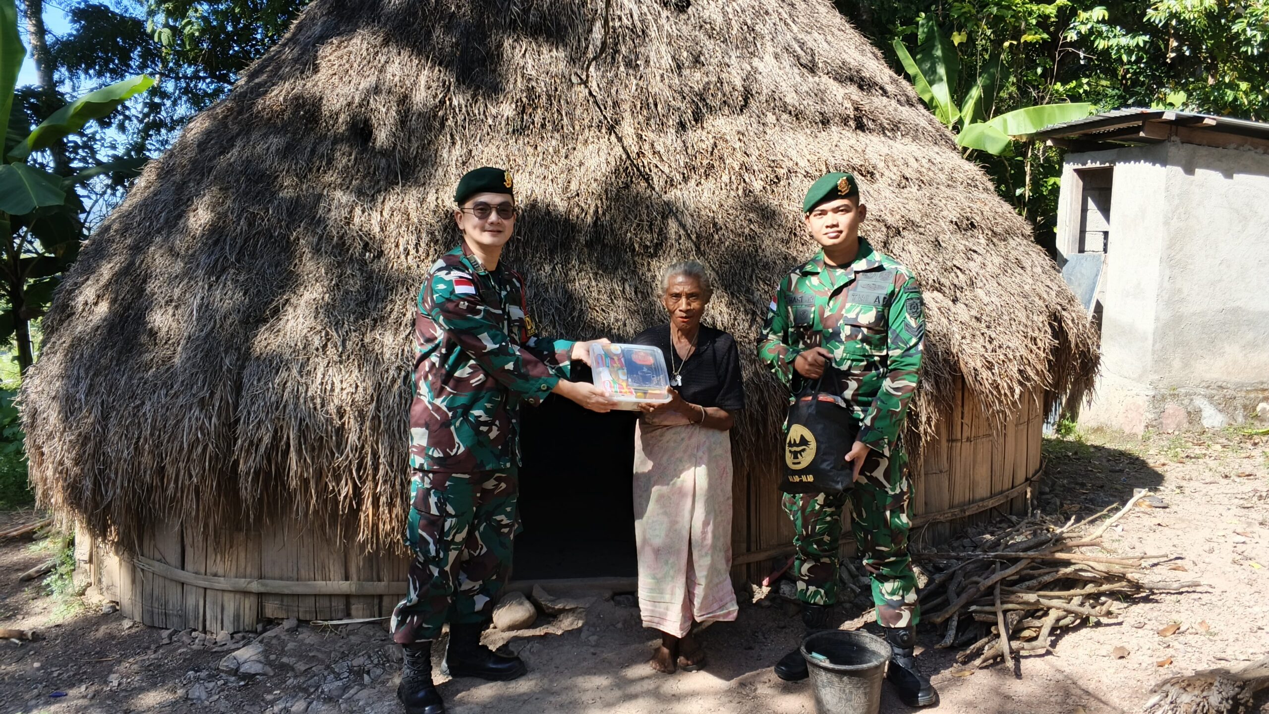 TTU – Makosatgas Pamtas RI-RDTL Sektor Barat Yonarhanud 2 Kostrad melaksanakan kegiatan rutin Jumat Berkah dengan membagikan sembako dan pakaian layak pakai untuk masyarakat yang membutuhkan di Desa Fatunisuan, Kecamatan Miomaffo Barat, Kabupaten TTU, Jumat (17/04/2026).