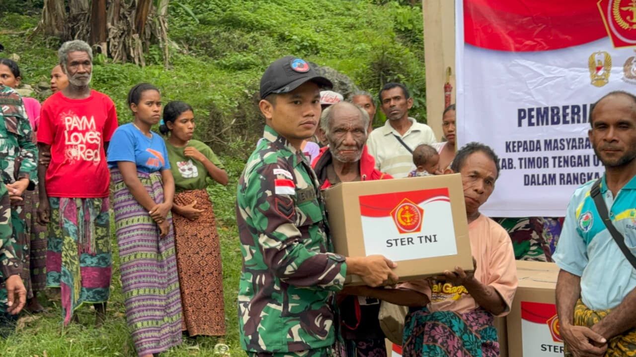 TTU – Satgas Pamtas RI–RDTL Sektor Barat Yonarhanud 2 Kostrad melalui Pos Naekake dan Pos Nelu melaksanakan kegiatan kolaborasi pembagian sembako bersama Kodim 1618/TTU kepada warga Desa Naekake dan Desa Nelu, Kabupaten TTU, Senin (29/12/2025).