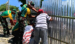 Belu — Prajurit Pos Lakmars Satgas Pengamanan Perbatasan RI–RDTL Yonarmed 12 Kostrad bersama masyarakat Desa Lakmaras melaksanakan kegiatan Karya Bakti dalam rangka persiapan acara adat sambut baru (komuni) yang menjadi tradisi penting bagi warga setempat, Jumat (07/11/2025).
