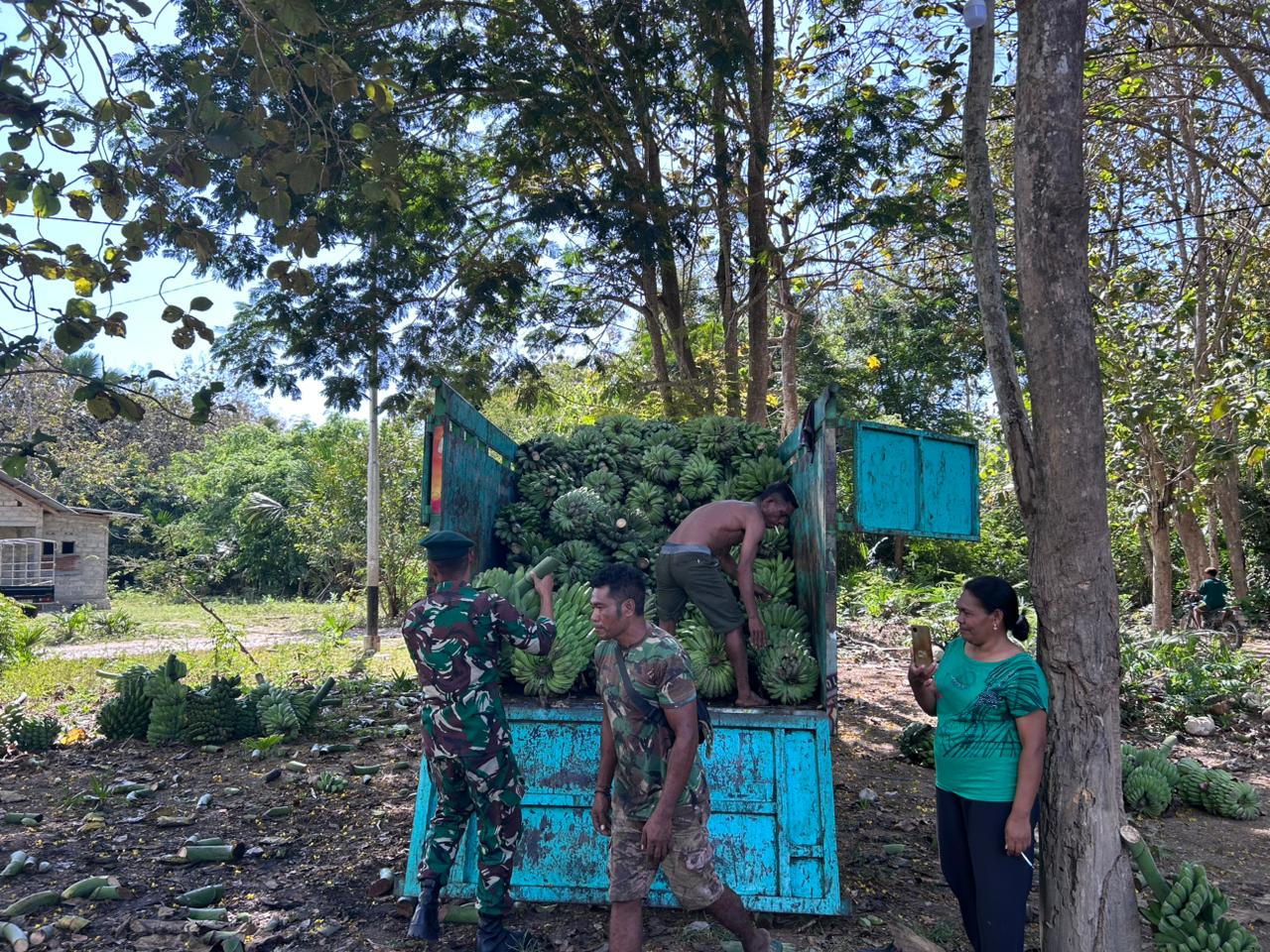 Malaka – Personel Satgas Pamtas RI–RDTL Sektor Timur dari Yonarmed 12 Kostrad yang bertugas di Pos Haslot kembali menunjukkan kepeduliannya terhadap masyarakat di wilayah perbatasan. Kali ini, mereka turut membantu warga Desa Alas Selatan, Kecamatan Kobalima Timur, Kabupaten Malaka, Nusa Tenggara Timur, dalam kegiatan panen pisang, Senin (20/10/2025).