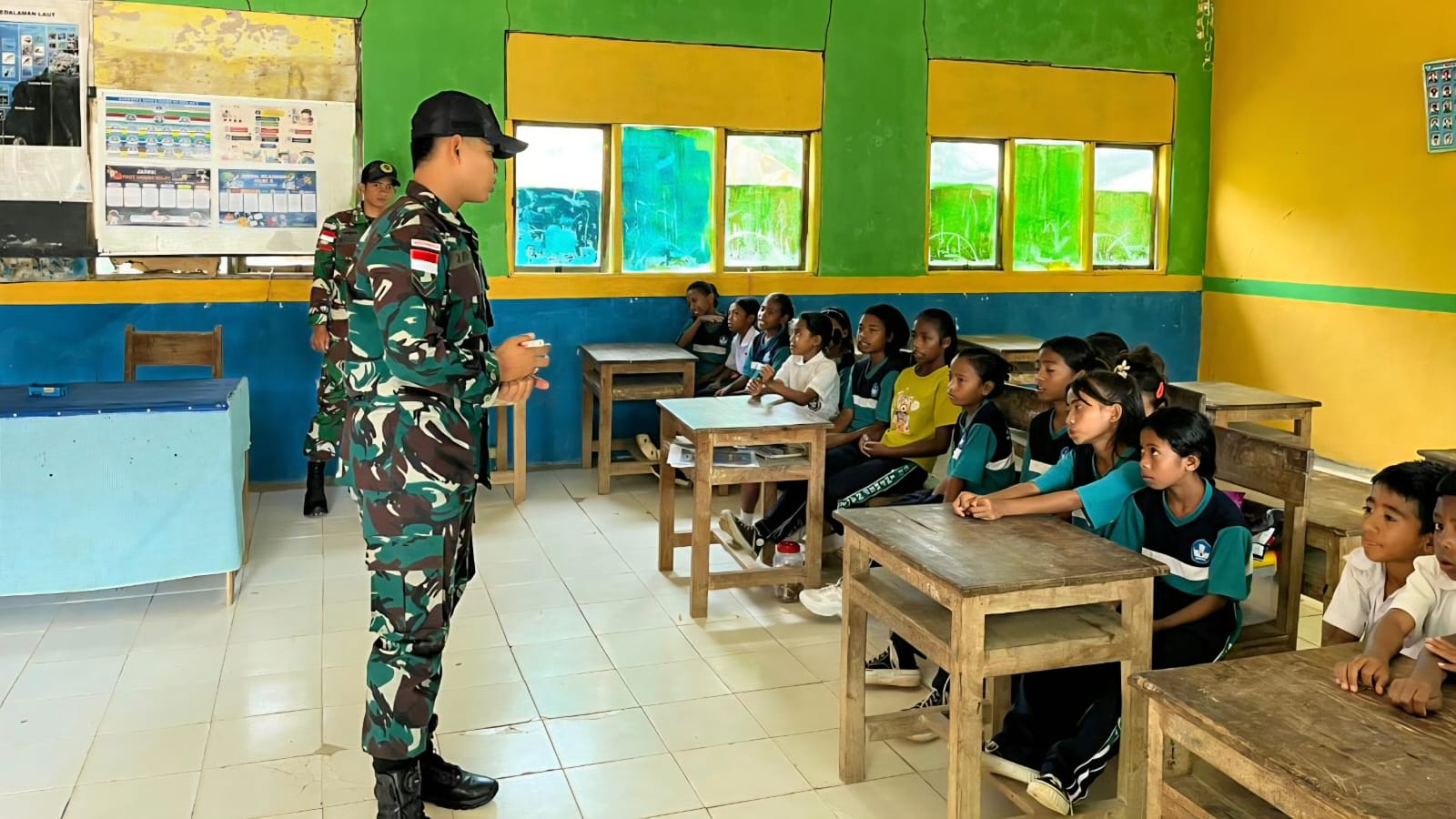Belu – Satgas Pamtas RI–RDTL Sektor Timur Yonarmed 12 Kostrad melalui Pos Nananoe melaksanakan kegiatan pengajaran materi Ilmu Pengetahuan Sosial (IPS) kepada siswa-siswi SDI Nanaenoe, Desa Nananoe, Kecamatan Nanaet Duabesi, Kabupaten Belu, Nusa Tenggara Timur. Kegiatan ini merupakan bentuk kepedulian Satgas Pamtas terhadap pendidikan dasar di wilayah perbatasan. Jumat (19/12/2025).