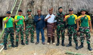 Belu — Prajurit Pos Fohululik Satgas Pamtas RI-RDTL Yonarmed 12 Kostrad kembali menunjukkan kepedulian dan kedekatannya dengan masyarakat perbatasan melalui kegiatan karya bakti renovasi rumah adat di Desa Maudemu, Kecamatan Lamaknen, Kabupaten Belu. Dalam kegiatan tersebut, Satgas juga menyerahkan sumbangan kepada Bapak Raja Dirun sebagai bentuk penghormatan terhadap tokoh adat dan dukungan bagi pelestarian budaya setempat.