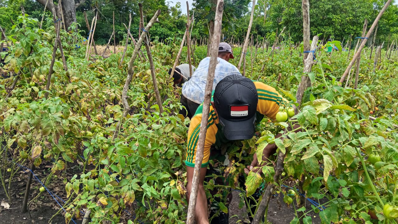 Belu – Satgas Pamtas RI–RDTL Sektor Timur Yonarmed 12 Kostrad melalui Pos Laktutus melaksanakan kegiatan panen tomat bersama masyarakat desa binaan di Desa Fohoeka, Kecamatan Nanaet Dubesi, Kabupaten Belu, Nusa Tenggara Timur. Kegiatan ini merupakan bentuk kepedulian Satgas dalam mendukung ketahanan pangan sekaligus meningkatkan kesejahteraan masyarakat di wilayah perbatasan, Rabu (14/01/2026).
