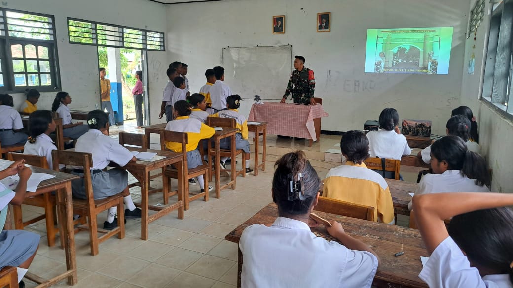 Danpos Nunura, Letda Arm David Partogi Sagala, S.Tr.Han., menyampaikan bahwa, pembinaan wawasan kebangsaan merupakan upaya untuk menanamkan semangat nasionalisme sejak dini. “Siswa-siswi di perbatasan harus memiliki pemahaman yang kuat tentang jati diri bangsa agar tidak mudah terpengaruh oleh pengaruh negatif yang dapat mengikis rasa cinta tanah air,” ujarnya, Senin (1/12/2025).