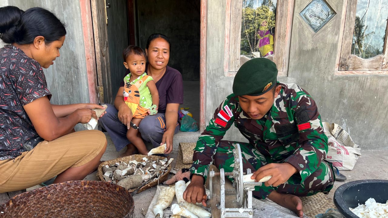 Dalam kegiatan tersebut, personel Satgas memberikan pendampingan mulai dari proses pemilihan ubi, teknik pengirisan, cara pengolahan, hingga penggorengan yang tepat agar menghasilkan kripik renyah dan berkualitas. Warga juga diajarkan proses pengemasan sederhana yang layak dijual, sehingga mampu menarik minat konsumen dan meningkatkan daya saing produk di pasaran lokal.