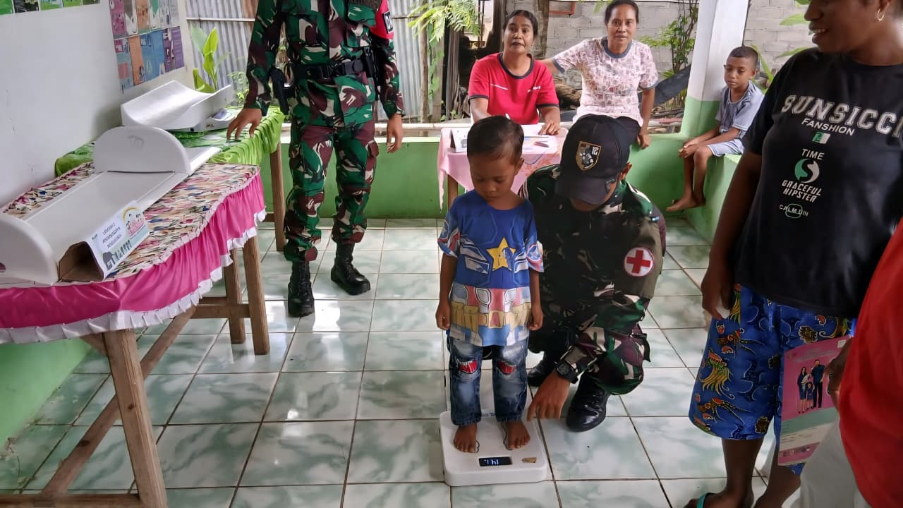 Pelayanan kesehatan tersebut dilaksanakan dengan sasaran sebanyak 70 anak balita usia 0 hingga 5 tahun. Dalam kegiatan ini, personel Pos Nunura bersama petugas kesehatan Posyandu melaksanakan pengecekan kesehatan meliputi penimbangan berat badan, pengukuran tinggi badan, serta pemantauan kondisi kesehatan balita secara umum.