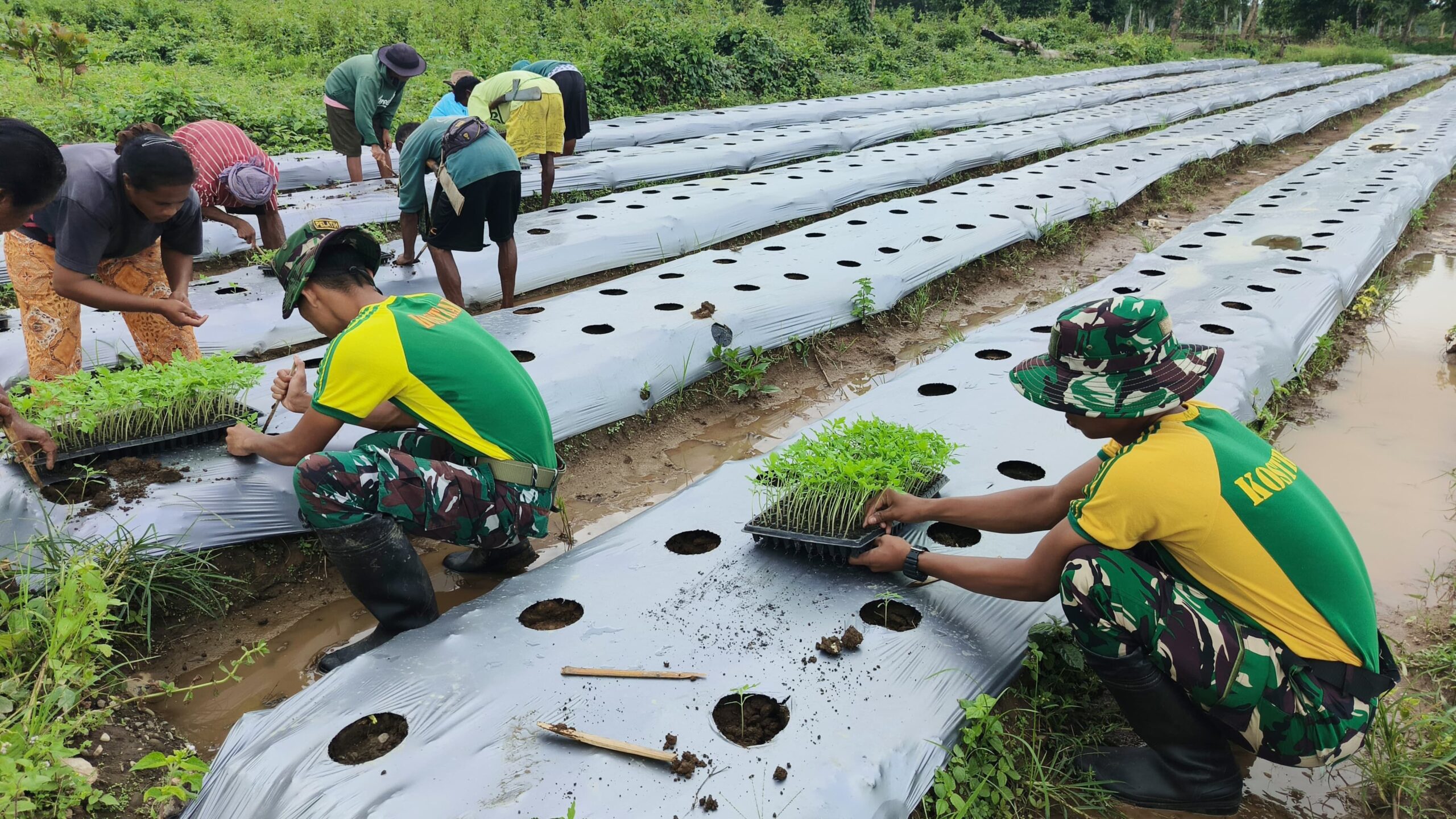 Penanaman tomat tersebut dilakukan di lahan milik Bapak Marcel yang selama ini dimanfaatkan sebagai kebun produktif warga. Kehadiran personel Satgas tidak hanya membantu dalam proses penanaman, tetapi juga memberikan semangat serta motivasi kepada masyarakat agar terus mengembangkan potensi pertanian lokal sebagai sumber penghasilan.