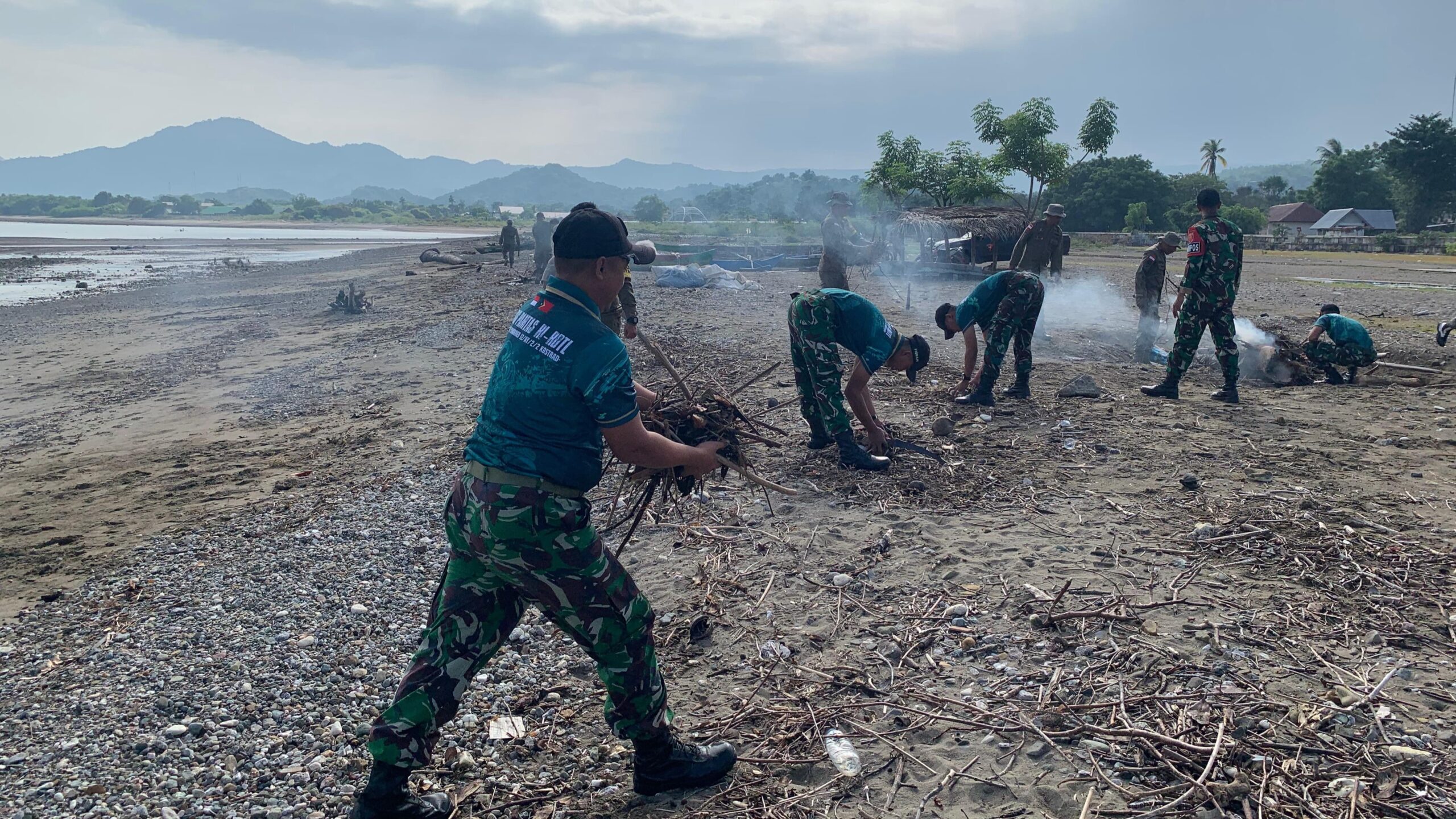 Personel gabungan secara bergotong royong membersihkan sampah plastik dan berbagai limbah yang tersebar di sepanjang garis pantai. Kegiatan ini juga menjadi sarana edukasi kepada masyarakat sekitar agar semakin peduli terhadap kebersihan lingkungan, khususnya wilayah wisata yang menjadi kebanggaan daerah.