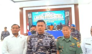 Tanjung Balai, 24 November 2025 – – – Tim gabungan TNI AL beserta Tim Fleet Quick Response Lanal Tanjung Balai Asahan kembali menunjukkan komitmennya dalam memberantas kejahatan narkotika di wilayah perairan Indonesia dengan menggelar konferensi pers tentang penggagalan upaya penyelundupan narkoba jenis sabu seberat 1.575 gram yang dipimpin oleh Komandan Lanal Tanjung Balai Asahan Letkol Laut (P) Agung Dwi H.D., M.Tr.Opsla., CTMP. di Mako Lanal Tanjung Balai Asahan, Senin (24/11).