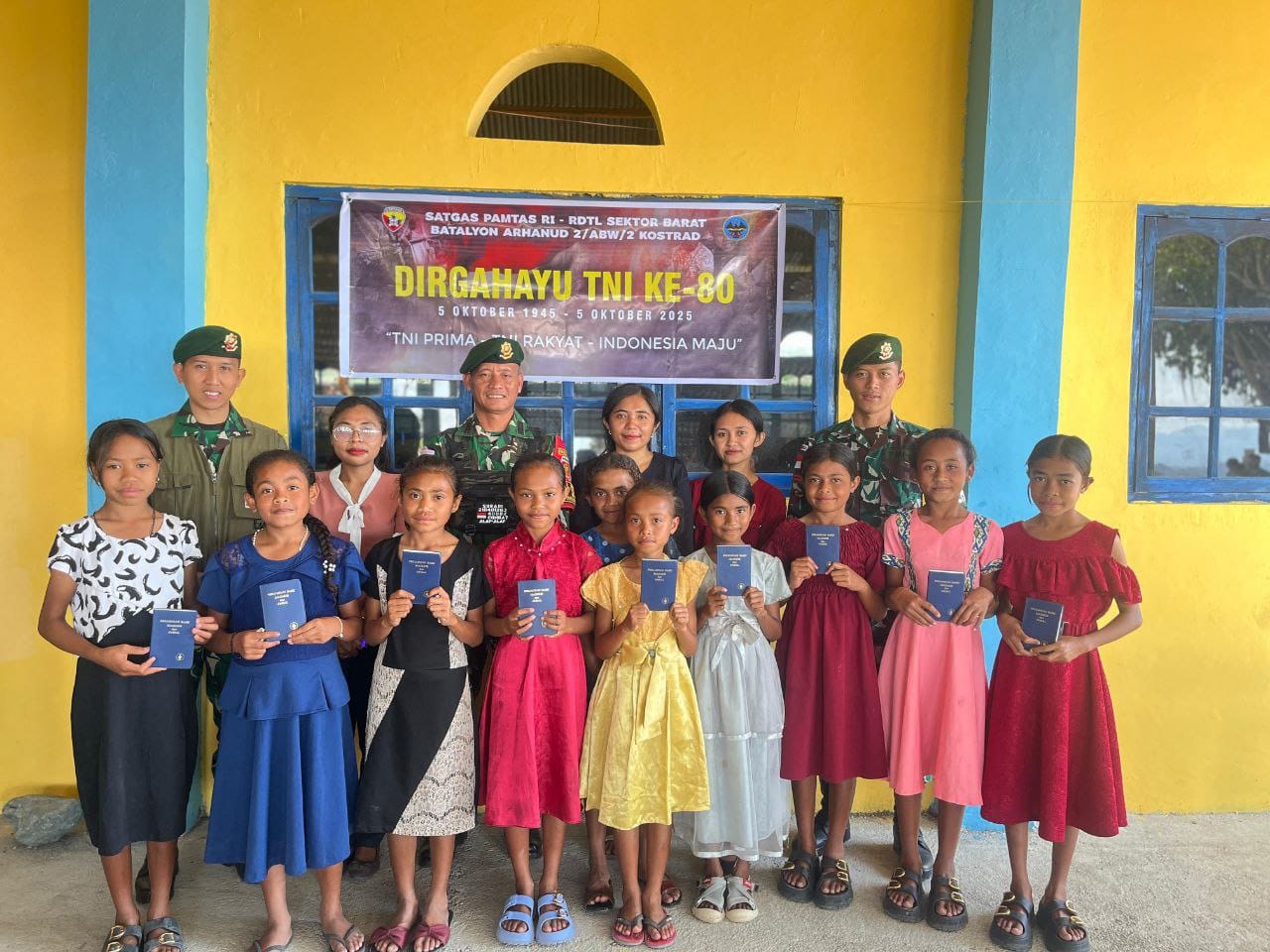 Kegiatan ini dipimpin langsung oleh Dan SSK 2, Lettu Arh Suradi, S.E. “Kegiatan ini kami laksanakan bertepatan dengan momen yang penting di mana pada hari ini, Minggu, 5 Oktober 2025 merupakan Hari Ulang Tahun TNI ke 80. Kami memberikan pelayanan kesehatan gratis di garis perbatasan RI-RDTL, serta memberikan buku Alkitab untuk Umat Gereja Kapel Haumeniana,” ucapnya.