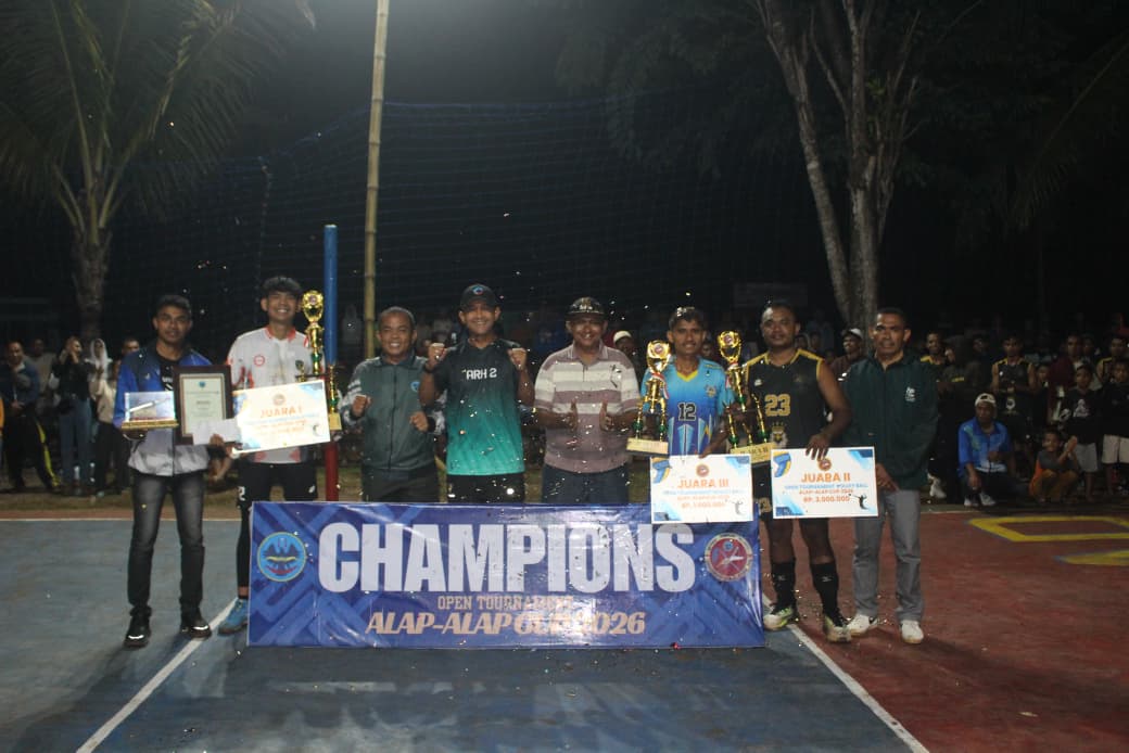 TTU – Dansatgas Pamtas RI-RDTL Sektor Barat Yonarhanud 2 Kostrad, Letkol Arh Endis Fahrul Rizal, S.Hub.Int., M.Sc., menutup gelaran turnamen bola voli terbuka Alap Alap Cup 2026 yang telah berlangsung selama 2 minggu di Pos Kallan Satgas Pamtas, Kecamatan Noemuti, Kabupaten TTU, Minggu (18/01/2026).