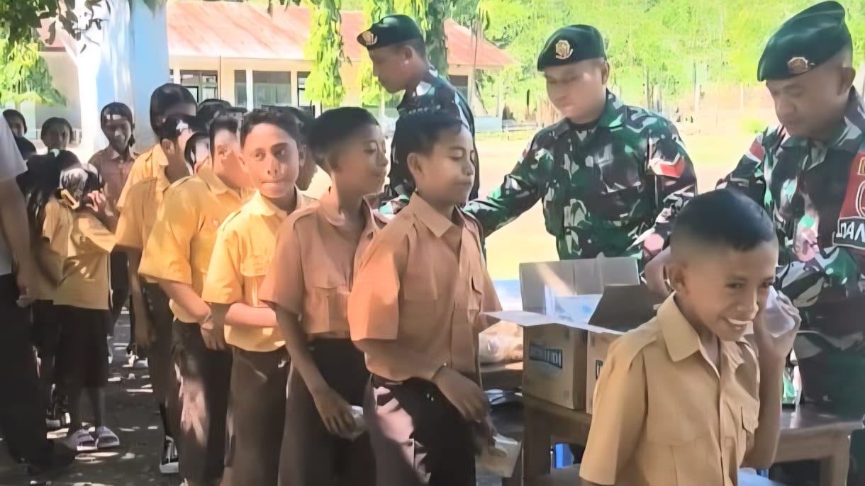 Kegiatan tersebut berlangsung penuh keceriaan. Para prajurit berinteraksi langsung dengan para siswa sembari memberikan motivasi pentingnya menjaga pola makan sehat agar tubuh tetap bugar dan siap mengikuti pelajaran setiap hari. Anak-anak tampak antusias menerima paket gizi sederhana yang dibagikan dengan penuh keakraban.